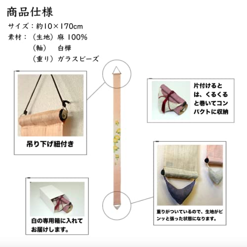 生産地:(企画・デザイン)日本製・(生産)中国製 / 素材:麻100%・(軸)白樺・(重石)ガラスビーズ