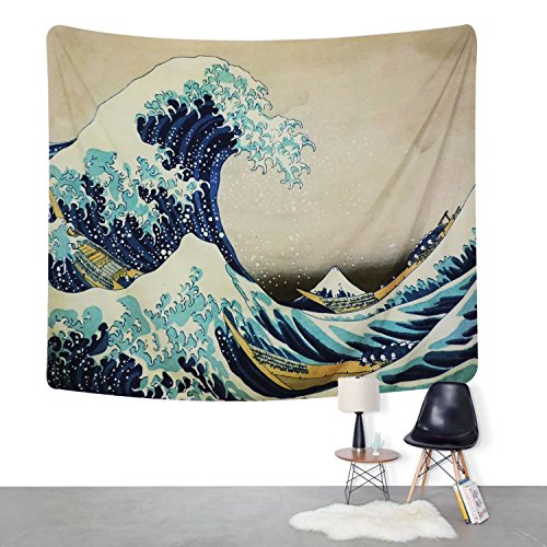 Pknoclan 和風タペストリー 富士山 神奈川沖波裏壁掛け 海の波 山 自然風景壁掛け布 古風装飾布 壁飾り リビン