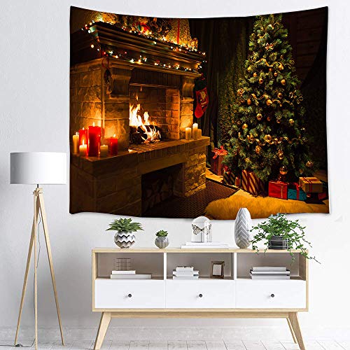 Refoiner タペストリー クリスマス 飾り おしゃれ 壁掛け 飾られたクリスマスツリーと暖炉 明るい火 暖かいクリ