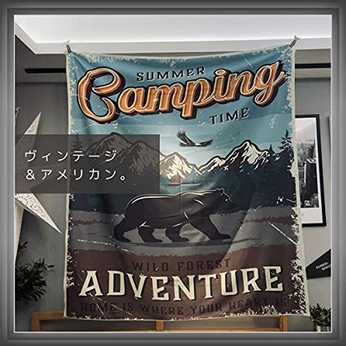 【アウトドア・アメカジデザイン】ヴィンテージ感あるアメリカンデザインのタぺストリー。かけ