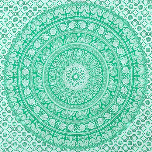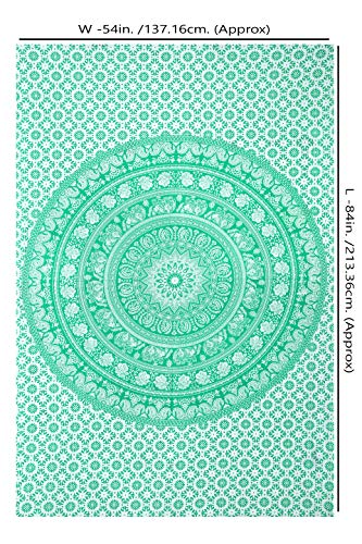 色とサイズ:緑のタペストリーは、スクリーン印刷されたデザインが施された綿100%の生地で作られた84 X54インチを測定します