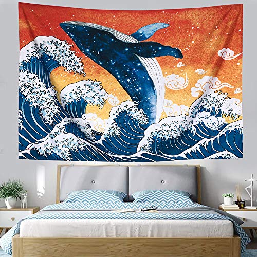 Negeekタペストリークジラ水彩和風壁ファッション多機能家の装飾ファッションアート布