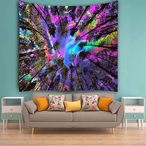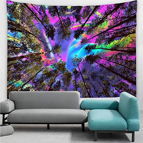 YISUREカラフルサイケデリック森星空極光レインボー タペストリー 150x100cm