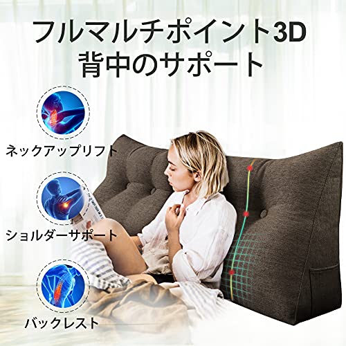 適切な傾斜角度の人間工学に基づいたウェッジ枕; コットンリネン混紡生地:プレミアムポリエステルファイバーフィル;携帯電話などを収納できる小さなサイドポケット。