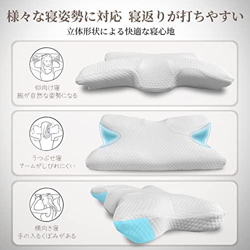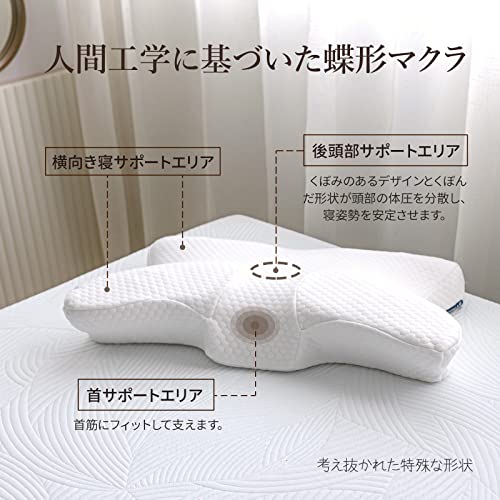 VCKAS 枕 まくら 低反発枕 蝶形枕 安眠 仰向き横向き対応 洗えるカバー付き 60*35*10/8cm