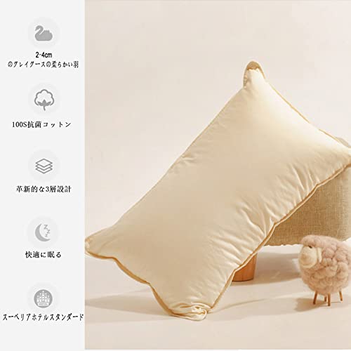 KITOVA 羽根枕 100%ナチュラル2-4cmグレイグースソフトフェザーダウン枕 ネックプロテクタースリープシングル