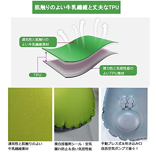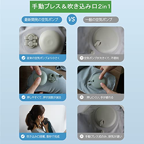 【両用ダブルバルブ】:、従来のエアーピローより、本社の製品は最新開発した手動プレス式&吹き込む式両用のバルブを採用し、3~5回に息を吹き込むか、手で約25秒押すだけでピローが膨らませます。注いた空気の量によって枕の高度や柔軟さが変えられます。