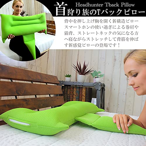 巻き肩、猫背の気になる方へ。首と背中を支え背骨を押し上げ胸を開く新構造Tバックピローが登場。
