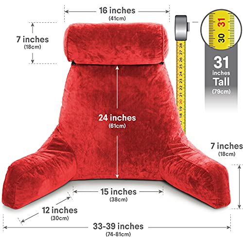 Husband Pillow - 赤、腕ビッグ背もたれリーディングベッドレスト、ぬいぐるみメモリ泡の塗りつぶし、バンジー