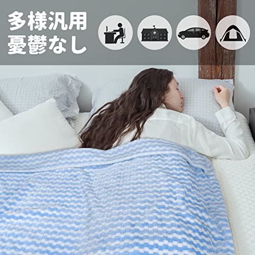 Zeneless ブランケット ひざ掛け ハーフブランケット 冬用毛布 軽量保温 昼寝毛布 出産祝い 130x150cm ブルー