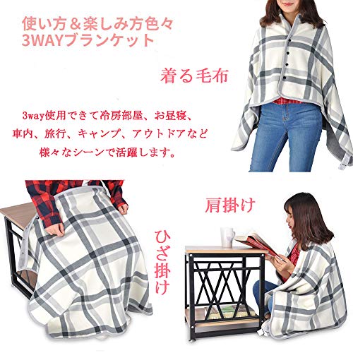 ひざ掛け ブランケット 肩掛け 着る毛布 大判 130×80cm 厚手 4way ボタン付き あったか 洗える 静電気防止 保温