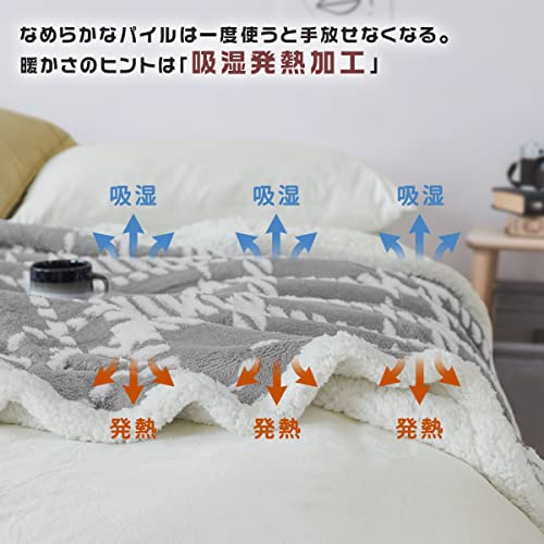 【二枚合わせで贅沢な暖かさ】吸湿発熱加工わたを使用しており、体から発散する汗などの湿気を吸収、熱に変換する繊維を使っているので、暖かい空気を溜めこんで朝までぼかぼか。ほどいい感じのボリューム感で、春と秋はこのモウフ一枚で充分、真冬は掛け布団や羽毛布団と併用すれば完璧です。