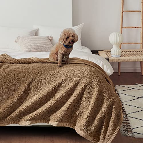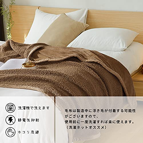 【もこもこの風合い】裏側はスーパーソフトミンキーフリースで、市販のフランネルより柔らかいです。「2枚合わせ」なので、毛布の間に空気の層ができて、暖かくなります。無地の色合いはシンプルでインテリアに邪魔しません。