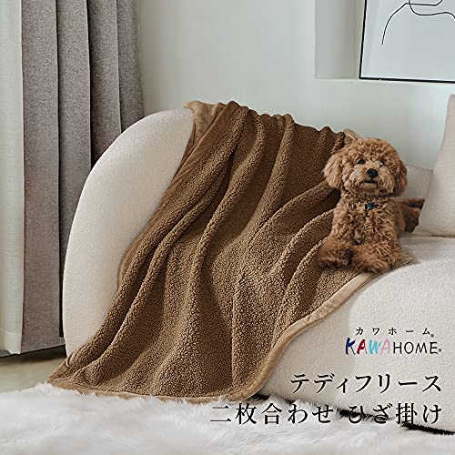 KAWAHOME テディフリース 二枚合わせ ひざ掛け ブランケット 毛布 127x152cm 大判 マイクロファイバー ハーフケッ