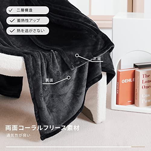 Deconovo 毛布 ひざ掛け ハーフケット ブランケット 70x100cm ブラック シングル 柔らかい 寒さ対策 おしゃれ 静電
