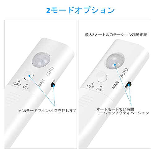 モーションセンサーを自由にオン/オフを押します。?アクティベートされたモーションライトストリップは、ワードローブでうまく動いて、ドアが開かれたときにライトを開けますので、主なライトを置く必要はありません。離れた後、ストリップライトはタイマーに自動的に20秒で閉めました。