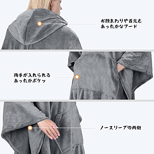 Catalonia 着る毛布 ポンチョ フード付き 着るブランケット ポンチョにもなる2wayブランケット マイクロファイバ