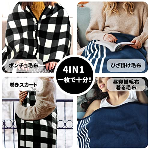 OceanWhale ひざ掛け ブランケット 選べる5色 100*140CM 大判 4way 着る毛布 春 花見用ひざ掛け毛布 ハーフケット ボ
