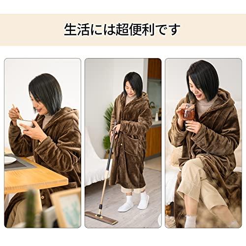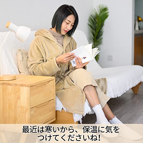 【ふんわりの質感】高品質な生地を使用し、素晴らしい縫製技術のおかけで、極細繊維がちゃんと詰まっていて、しっかりと暖かさを守ります。また、着る毛布の通気性と耐久性にも優れています。表も裏もふわふわとした手触り、ぬくもりに包まれて、心地良