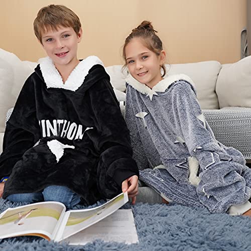 Winthome 着る毛布子供用 パジャマ ポンチョ キッズ もこもこ ルームウェア マイクロファイバー フード ポケッ