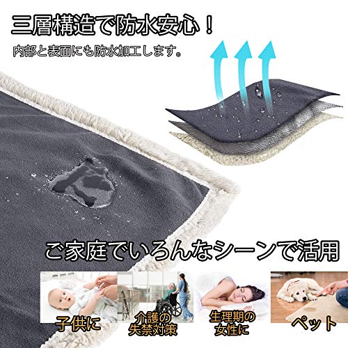 【防水&防寒対策】表裏使い分けられるリバーシブルで、表面に柔らかな防水マイクロファイバー素材、裏面に厚くて暖かいシープボア素材を採用し、「防水性」と「保温性」を兼ね備えた毛布です。内部にもは防水コーティングが施されています。3重構造で水分を素早く吸収するのに、裏には水分を通さなく、防水効果が倍〓!暖かさと寝心地のよさに全身包まれ、この防水毛布が快適に安眠できます。