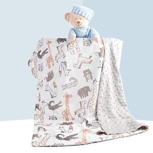 BORITAR ソフトミンキードット二重織毛布 ベビーブランケット 75cm x 100cm (ブラウンアニマルズ)