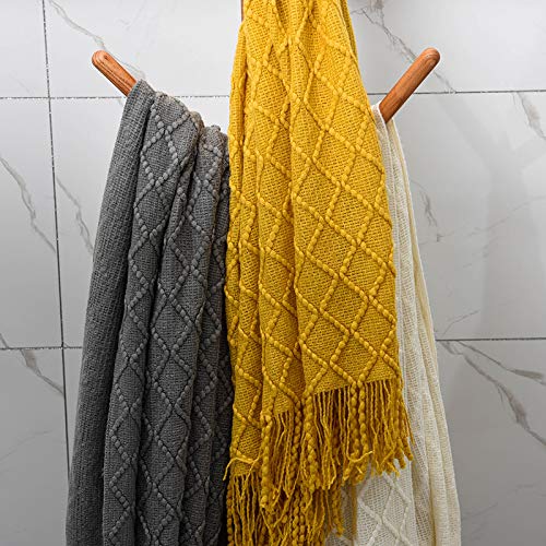 Hisashi ブランケットの質感のある柔らかいソファーのソファの装飾的なニットの毛布の房を投げます毛布 ニッ