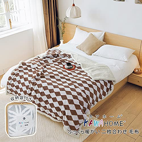 KAWAHOME 二枚合わせ 毛布 セミダブル 160x200cm 冬用 発熱 掛け毛布 暖かい 裏ボア ふわふわ 柔らかく肌触り マイ