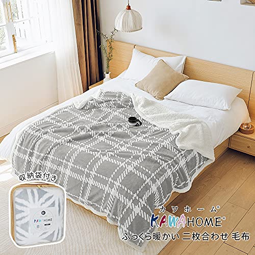 KAWAHOME 二枚合わせ 毛布 ダブル 180x200cm 大判 冬用 発熱 掛け毛布 暖かい 裏ボア ふわふわ 柔らかく肌触り マ