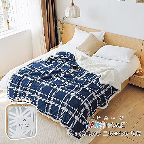 KAWAHOME 二枚合わせ 毛布 ひざ掛け 70x100cm 冬用 発熱 掛け毛布 暖かい 裏ボア ふわふわ 柔らかく肌触り マイク