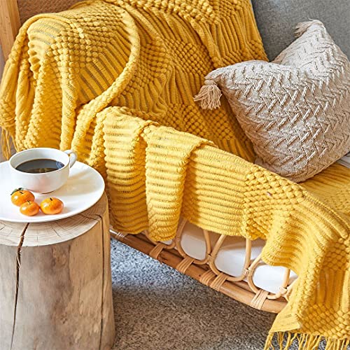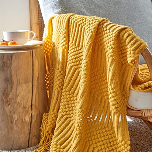 Hisashi ソファベッド用ニットブランケット温かみのある心地よいブランケット水玉模様タッセルオールシーズ