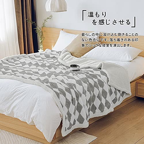 【ホームインテリアに最適】ボアで作り出されたダイヤの模様は立体的でユニークです。厚手毛布のリバーシブルデザインでお部屋の雰囲気を変われます。一日の疲れをリセットして、大切な睡眠タイムを素敵に演出しましょう!