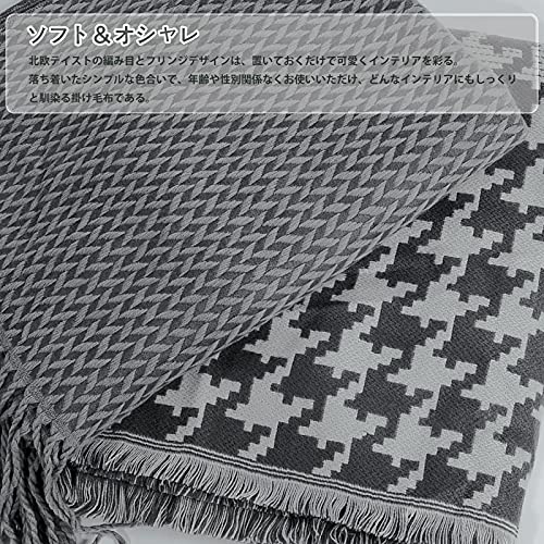 ??【ファッション感味わえるデザイン】北欧テイストの編み目とフリンジデザインは、置いておくだけで可愛くインテリアを彩ります。落ち着いたシンプルな色合いで、年齢や性別関係なくお使いいただけ、どんなインテリアにもしっくりと馴染る掛け毛布です。ファッション感が味わえ