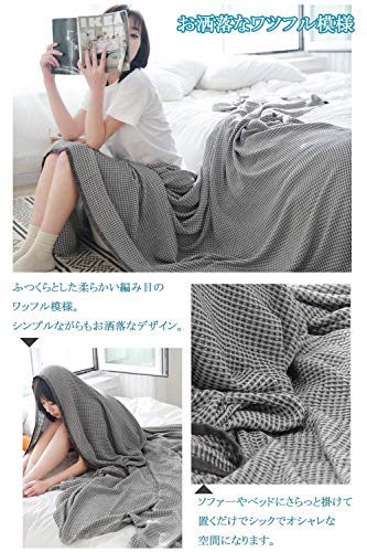 【お洒落な模様】 ふっくらとした柔らかい編み目のワッフル模様にデザインはシンプルながらもお洒落です。ソファーやベッドにさらっと掛けて置くだけで、シックでオシャレな空間になります。