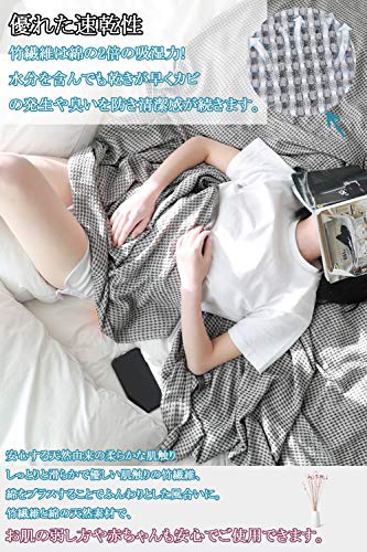 【素材】 竹繊維100%。竹繊維という特別の素材のおかけで、水分に対しての吸湿力は普通の綿より2倍も高いので、カビの発生や臭いを防ぐことができます。しっとりと滑らかで優しい肌さわりの竹繊維はお肌の弱い方や赤ちゃんにも安心でご使用できます。遠赤外線効果のある竹繊維は冬で体を内側から温めて、竹素材の爽やかさは夏で涼しく感じて、一年中心地よい眠りをあなたにお届けします。