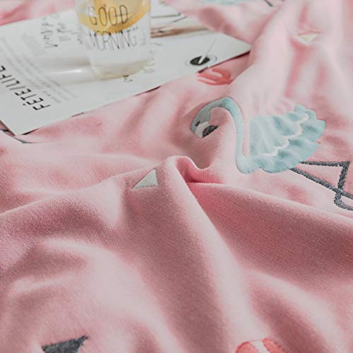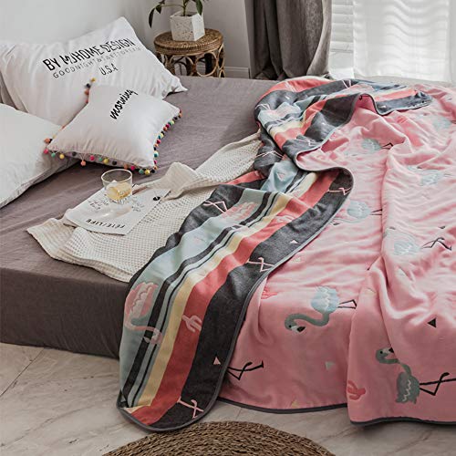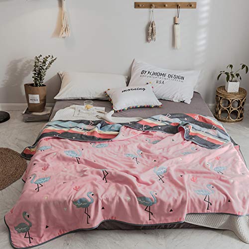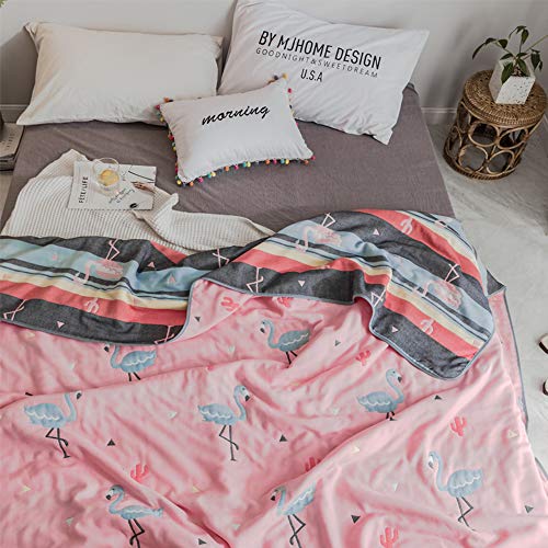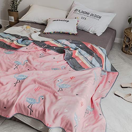 Hanacat タオルケット 6重ガーゼケット ダブル 綿100% 肌掛け ふわふわ 吸湿性 洗える フラミンゴ柄 ピンク(200×2