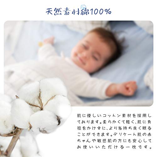 【天然素材】肌に優しい天然素材綿100%を採用しております。柔らかくて軽く、肌に優しいのでデリケート肌の赤ちゃんや敏感肌の方にも安心してお使いいただける一枚です。チクチク肌を刺して刺激することもありません。