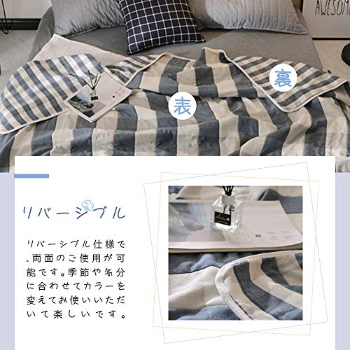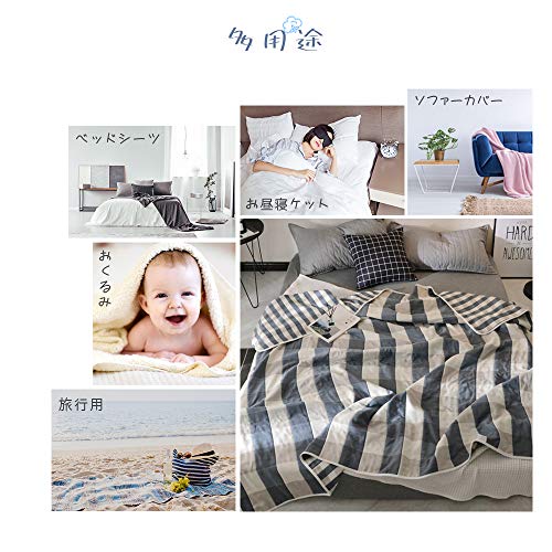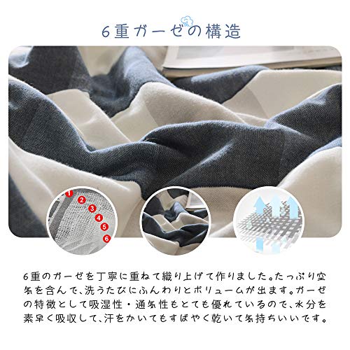 Hanacat タオルケット 6重ガーゼケット ダブル 綿100% 肌掛け ふわふわ 吸湿性 洗える チェック柄 ブルー(200×230c