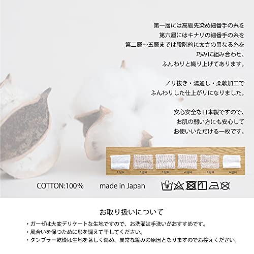 【素材】綿100% 6枚の異なる組織のガーゼが織り重なって出来ています。