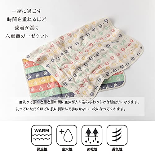 fuwara 6重織ガーゼ ガーゼケット ひざかけ おひるねサイズ約70×100cm日本製 (気球(多色))