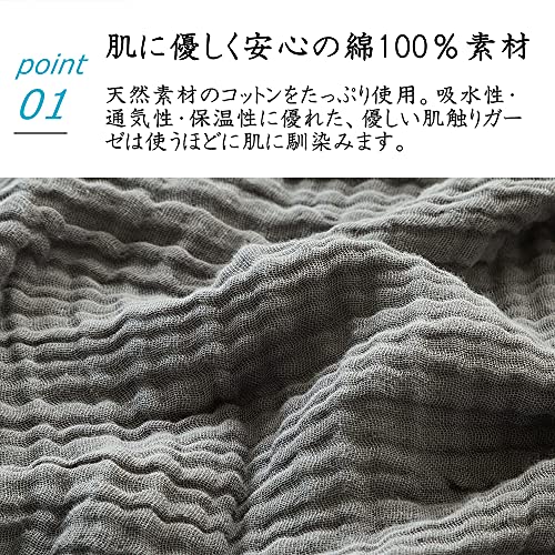 【吸水性の高い綿100%】吸湿性と速乾性の良い綿100%で作られてきたガーゼなので、汗を素早く吸い取って放出して、蒸し暑い夜に寝汗をかいても蒸れずにさらっと快適に過ごせます。
