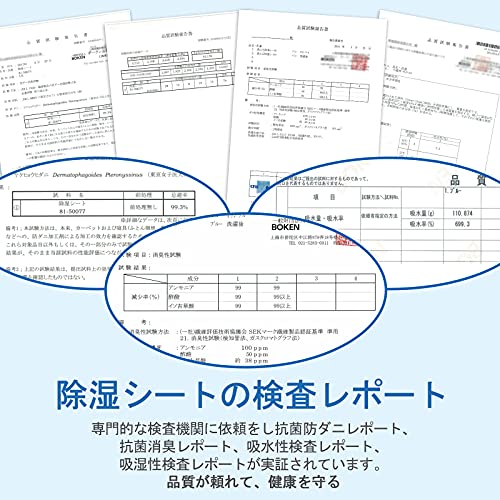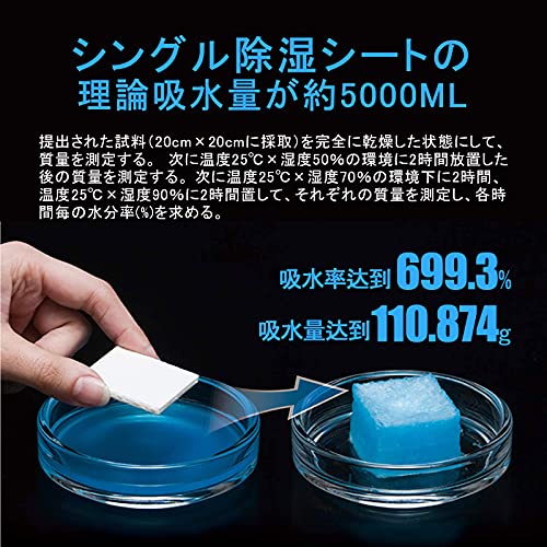 【ペットボトル10本分の水分に相当する湿気を吸収する】国内の公的検査期間の吸湿性試験によると、1m?の生地の吸湿量は約2750ccで、吸水率は約699.3%に達しています。セミダブル 除湿パットは、理論上、ペットボトル11本分の水分に相当する湿気が吸収できます。この除湿パッドの吸湿効果は、他の従来の除湿パッドの2~3倍で。