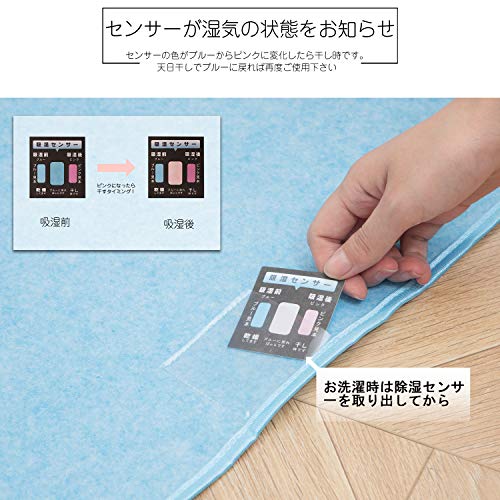 【干すタイミングが一目瞭然】湿度を教えてくれる吸湿センサー付き。吸湿量が増えると、センサーの色が青からピンクに変わり、天日干しのタイミング。干すだけで吸湿力が回復するので長くお使いいただけます。汚れたら洗濯機で丸洗いOK!(洗濯の際には除湿センサーは取り外してください。)