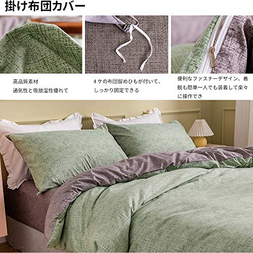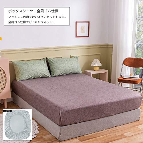 ?【布団カバー 4点セット セミダブル】(1)掛け布団カバー:170210cm 布団留め4ヶ所ひも所付き (2)ボックスシーツ:120200+30cm サイズより大きめなので、高さ3-25cmの敷き布団とマットレスの底まで包む可能 (3)枕カバー(2枚)・43X63cm