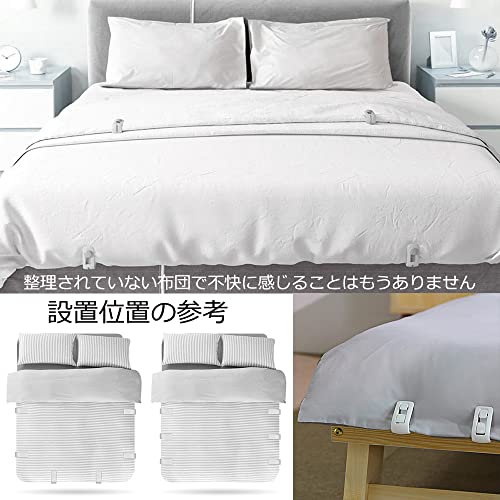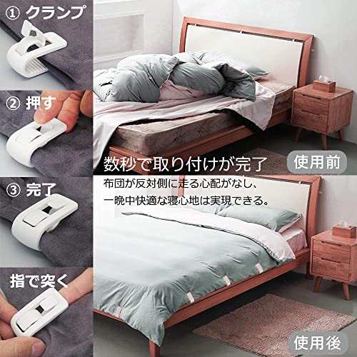 ?実用的なクリップ:針が使われてないクリップ式の布団固定器 6枚。キルトが反対側に走る心配がなし、シーツと布団を強力なクリップで固定する。毛布を所定の位置に保持し、一晩中快適な寝心地は実現できる。