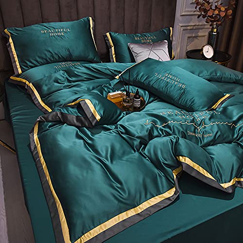 WLDMAI布団カバー 4点セット ダブル ベッドカバー シルクみたい素材 ボックスシーツ ツルツル 掛布団カバー シ