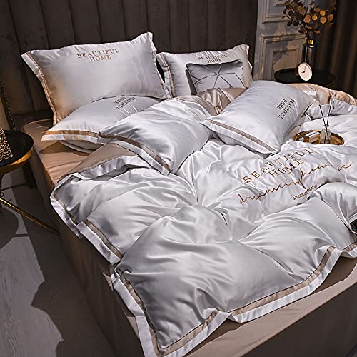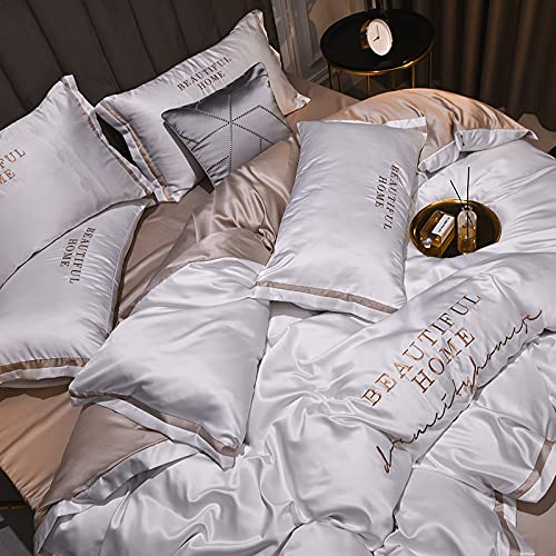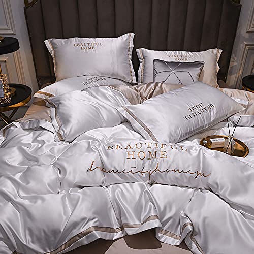 WLDMAI布団カバー 4点セット ダブル ベッドカバー シルクみたい素材 ボックスシーツ ツルツル 掛布団カバー シ