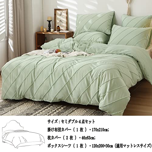 柔らかい ボックスシーツ 布団カバー セミダブル4点セット(170x210cm) 斜めのストライプ掛け布団カバー 合わせ