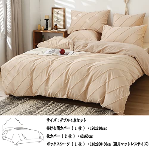 通気性の良い 敷き布団用ボックスシーツ 布団カバー ダブル4点セット(190x210cm) 柔らかい 掛け布団カバー 合