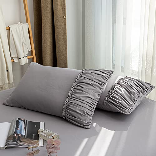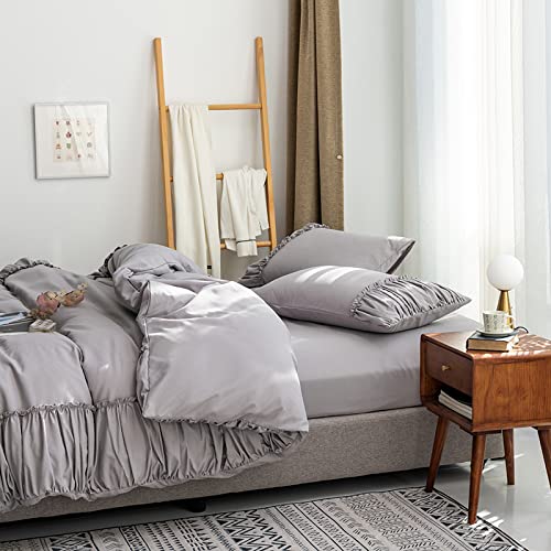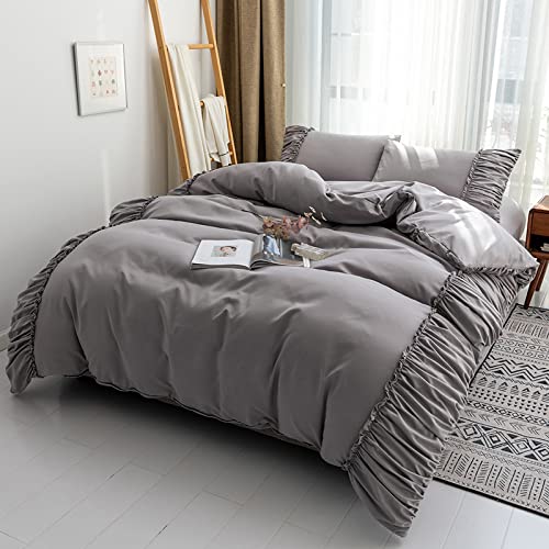 Ovege 布団カバー 3点セット シングル グレー 掛け布団カバー ボックスシーツ 枕カバー 洋式・和式兼用 2方向ジ
